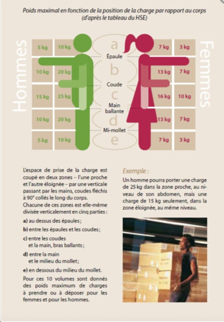 Poids maximal en fonction de la position de la charge par rapport au corps